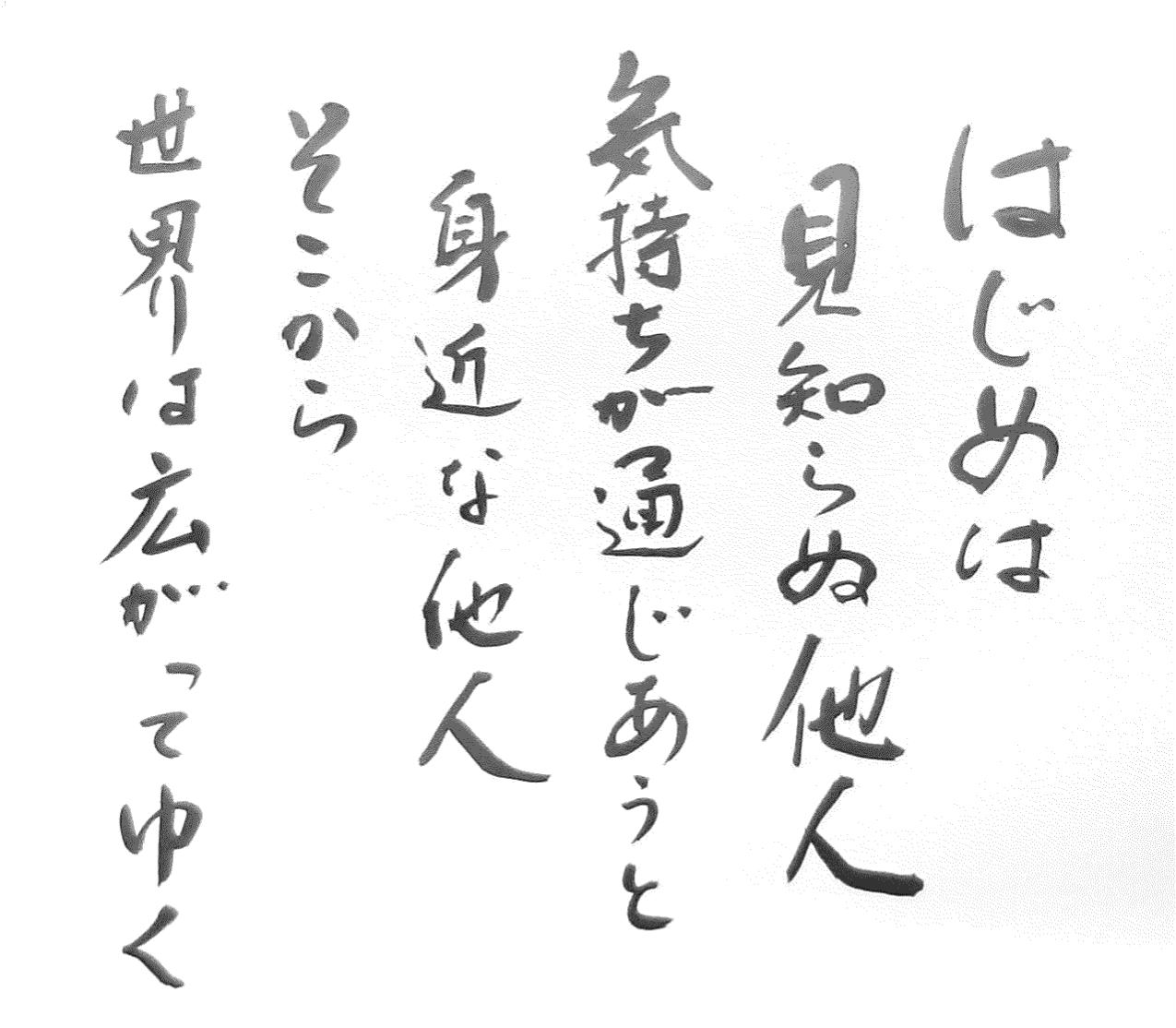 私は小学校四年生の孫を連れてときどき外食に行きます。あるお店に行って食事の支払いをしたときに、孫は大きな声で「とても美味しかったです、ごちそうさまでした」と店員さんに言いました。店員さんはちょっと驚いたような顔つきをしました。しばらくの時を置いてまたそのお店に行き、食事のあと支払いをして「とても美味しかったです・・」と孫はまた大きな声を出し、店員さんは笑っていました。そしてまたしばらく時が経ったあとにそのお店に行くと、店員さんは「あら、いらっしゃい」とにっこり笑って迎えてくれました。この出来事を思い起こし考えをめぐらせている中で、この言葉が浮かんできたのです。仏教がいうご縁とは偶然のたまたまの出来事のことを言いますが、その出会いをこちら側がどのような態度で迎えるかということに大きな要因があると思います。私たちは日々にさまざまな出会いを与えられて生活しています。このことが新しい世界を開くきっかけになるためには、まず自分の方からの向きあい方が大事なのだと思いました。